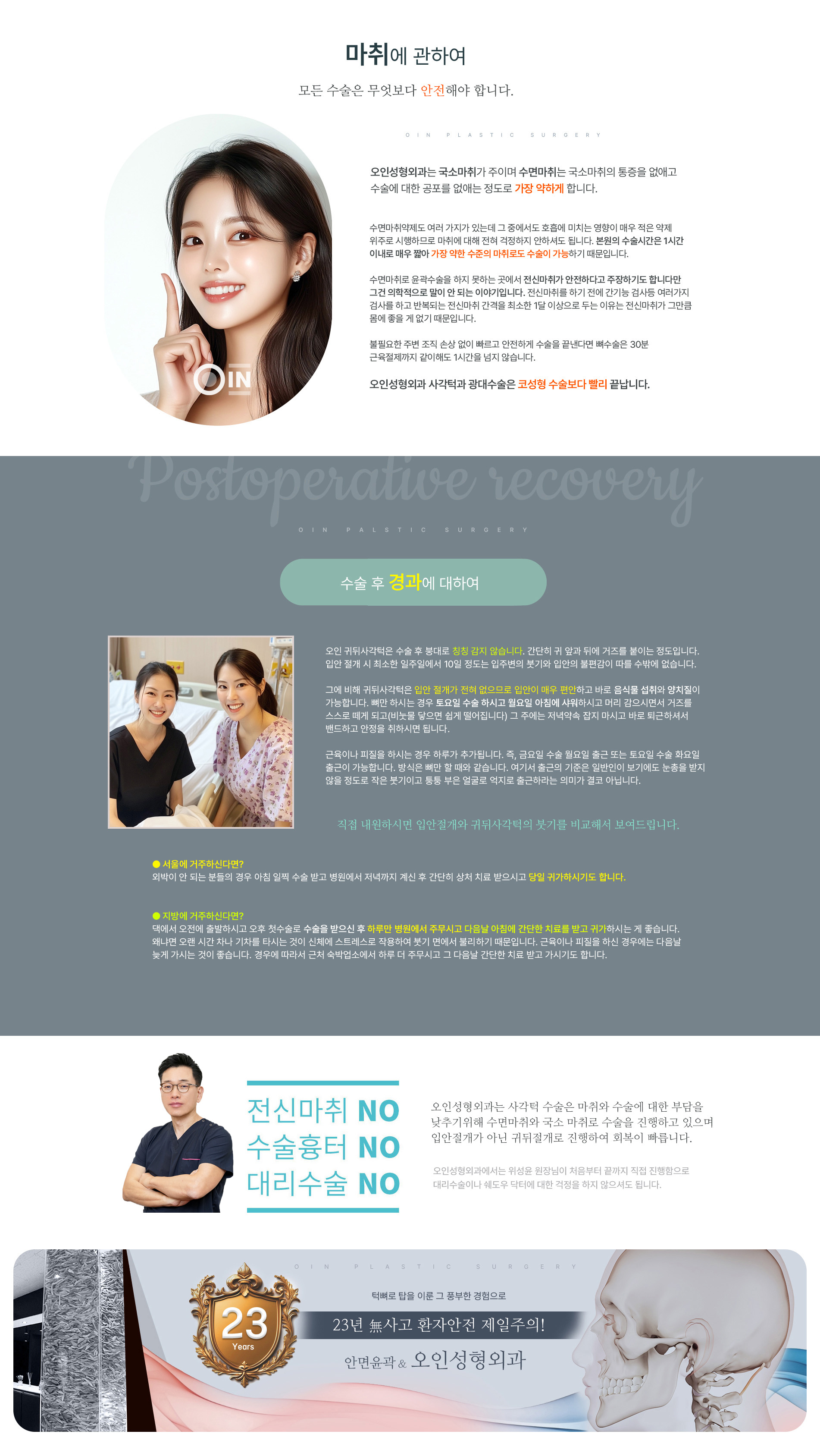 마취와 경과 > 귀뒤사각턱수술이란 > 귀뒤사각턱(턱뼈탑) > 대한민국 사각턱 NO.1 오인성형외과