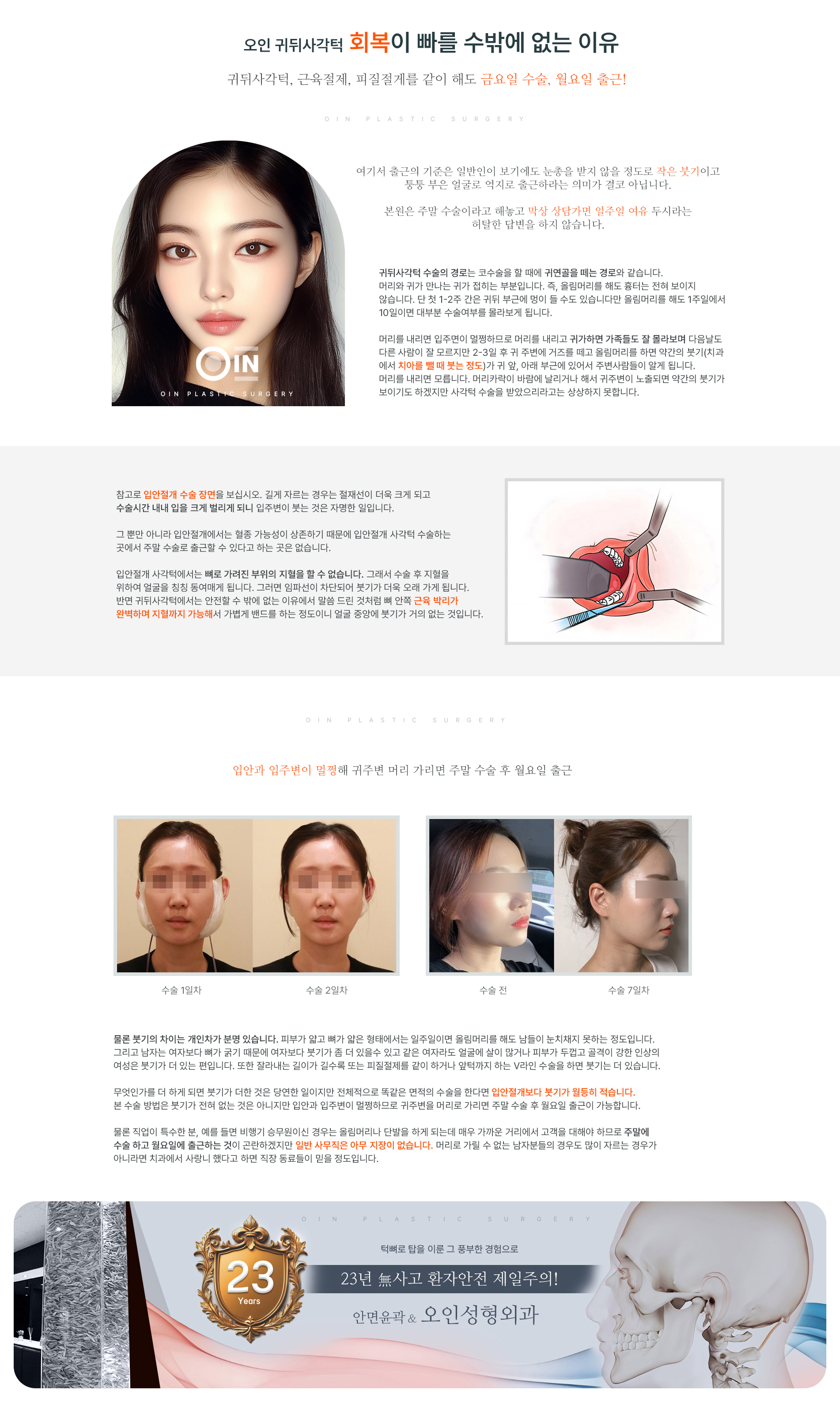 회복이 빠를 수 밖에 없는 이유! > 오인 귀뒤사각턱 특징 > 귀뒤사각턱(턱뼈탑) > 대한민국 사각턱 NO.1 오인성형외과