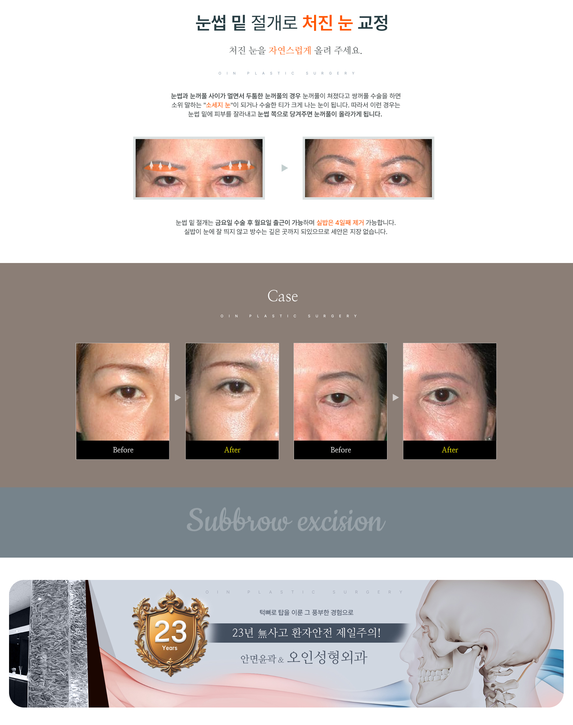 눈썹 밑 절개로 처진 눈 교정 > 동안성형 > 대한민국 사각턱 NO.1 오인성형외과
