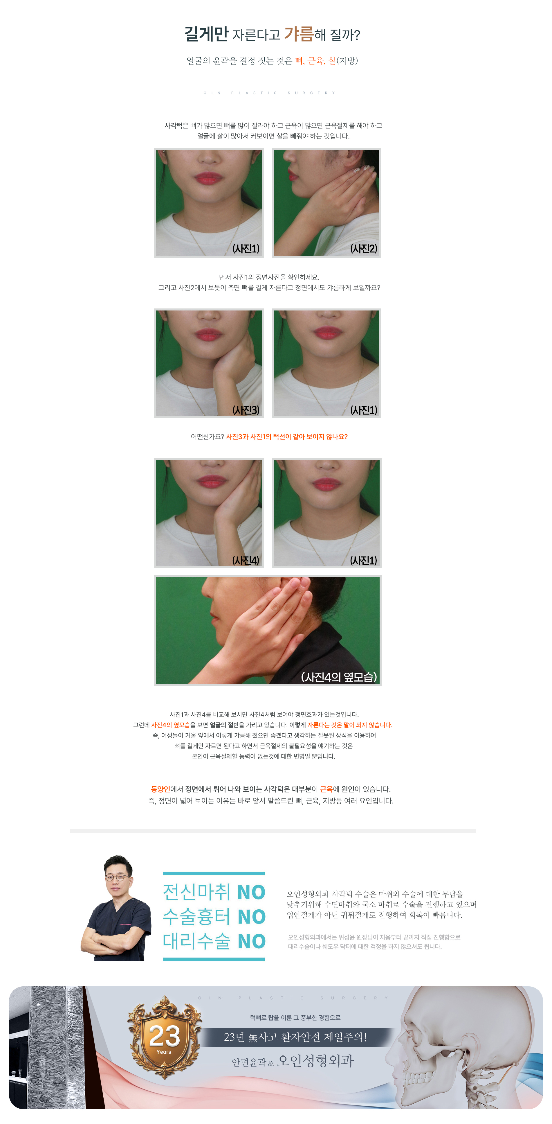 오인 귀뒤사각턱 특징 안전할 수 밖에 없는 이유 정면, 측면 모두 우수할 수 밖에 없는 이유 길게만 자른다고 갸름해 질까? 회복이 빠를 수 밖에 없는 이유!